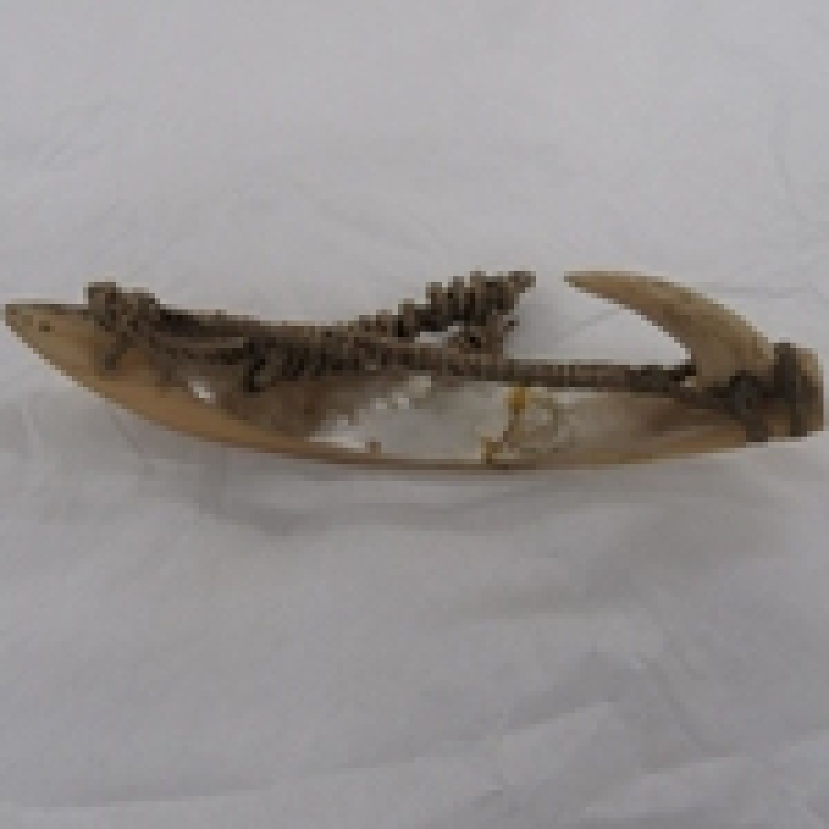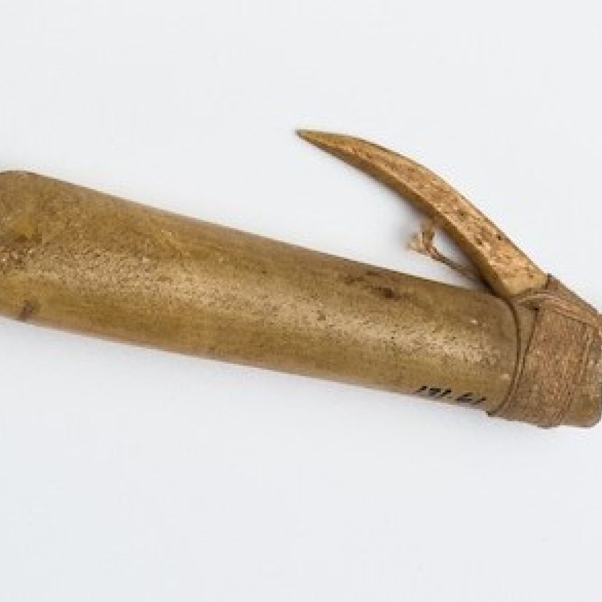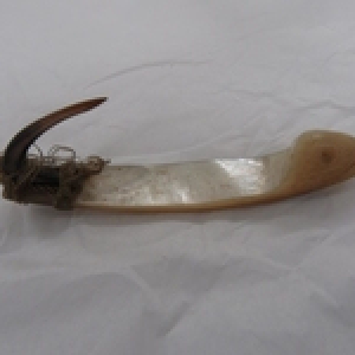 From there, I had a look at the collections of the Museum of New Zealand Te Papa Tongarewa. They had an extensive collection of fish hooks, but they looked a little different to the one in our collection. So I searched around a bit, trying to find mother of pearl hooks in their collection. And they had some – trolling lures, called Pā Kahawai in Māori. The mother of pearl shank would have attracted the attention of fish.